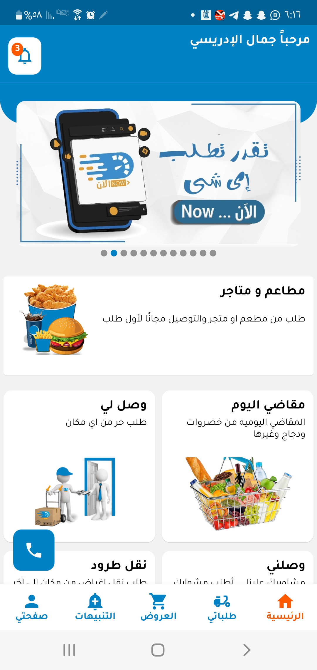 تطبيق الآن للتوصيل