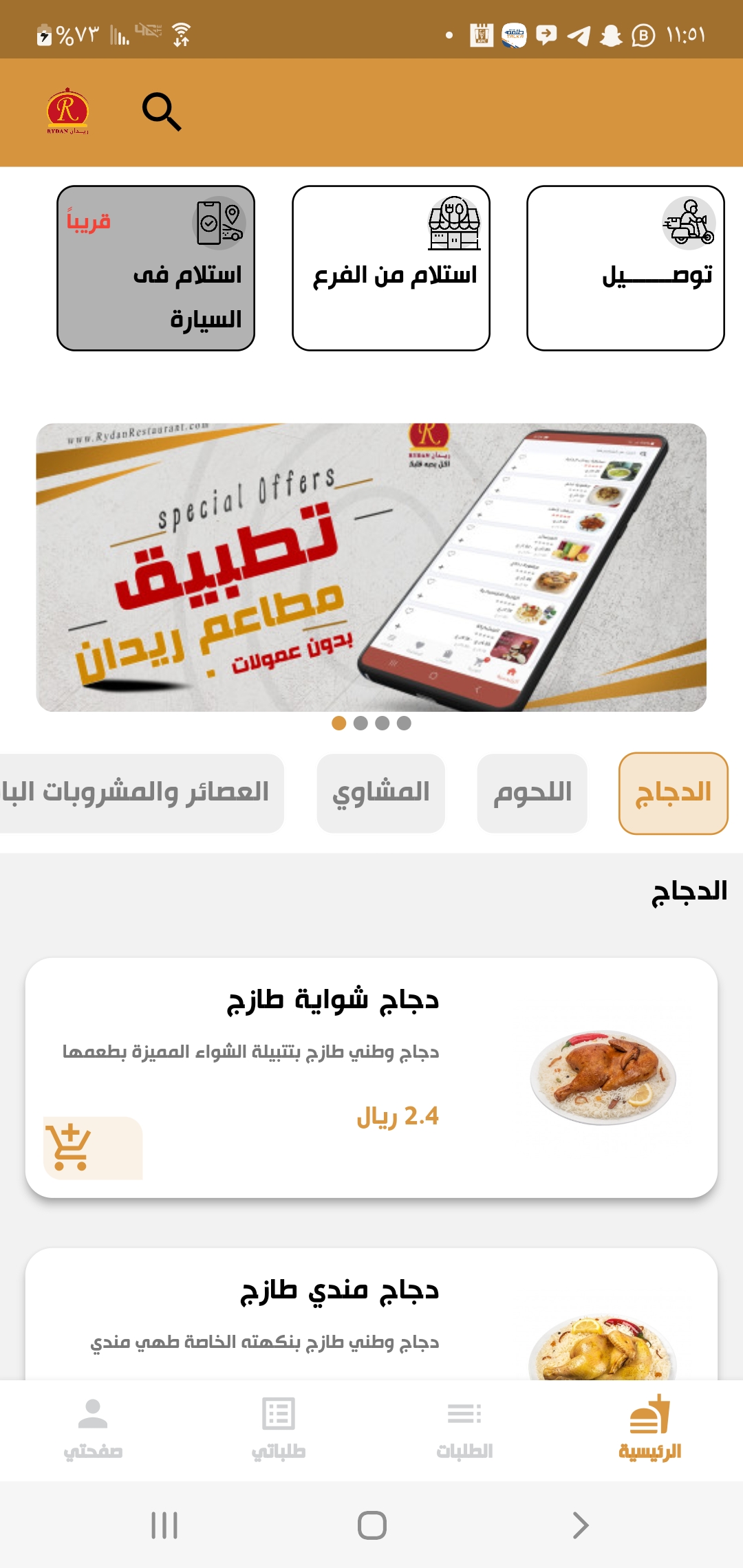 تطبيق توصيل طلبات للمطاعم